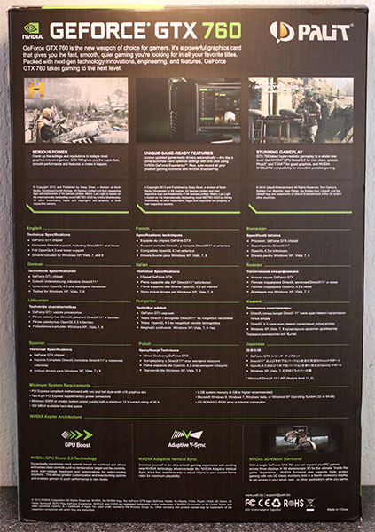 The Palit GTX 760 comes in a very huge and nice box. The box is almost equal to the size of any 20" Monitor you can find in the market.